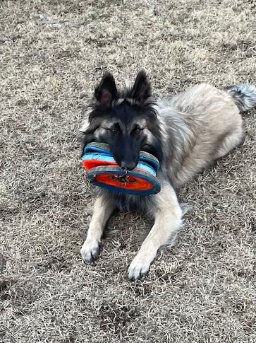 Ticket is intelligent, biddable, and has a moderate overall drive. She is motivated by both food and toys. She settles quickly but is always ready for anything. Ticket is social and very sweet. She loves to snuggle, loves to play, and is a happy dog who loves life! She is currently training in obedience, tracking, and scent work.